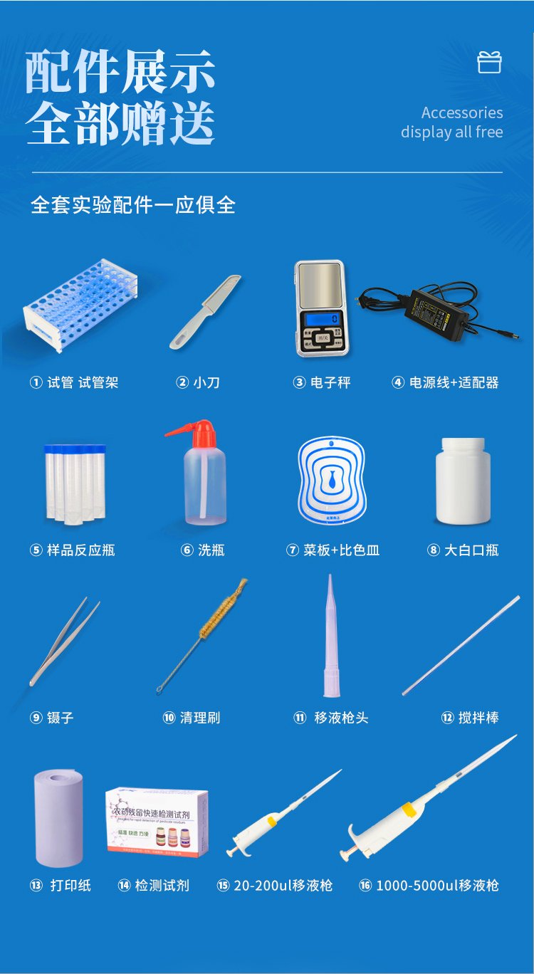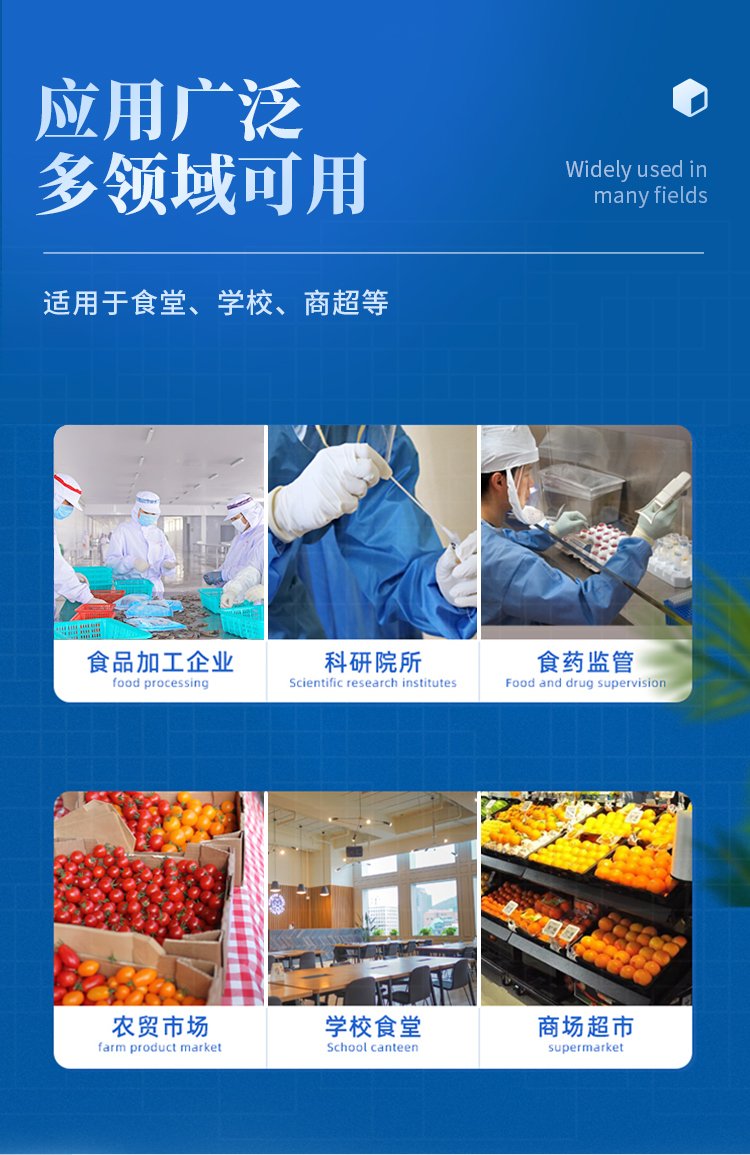 廣泛應用于主要用于蔬菜、水果、茶葉、糧食、農副產品等食品中有機磷和氨基甲酸酯類農藥殘留的快速檢測;此外還可用于果蔬茶生產基地和農貿批發銷售市場現場檢測,餐館、學校、食堂、家庭果蔬加工前的安全速測等。
