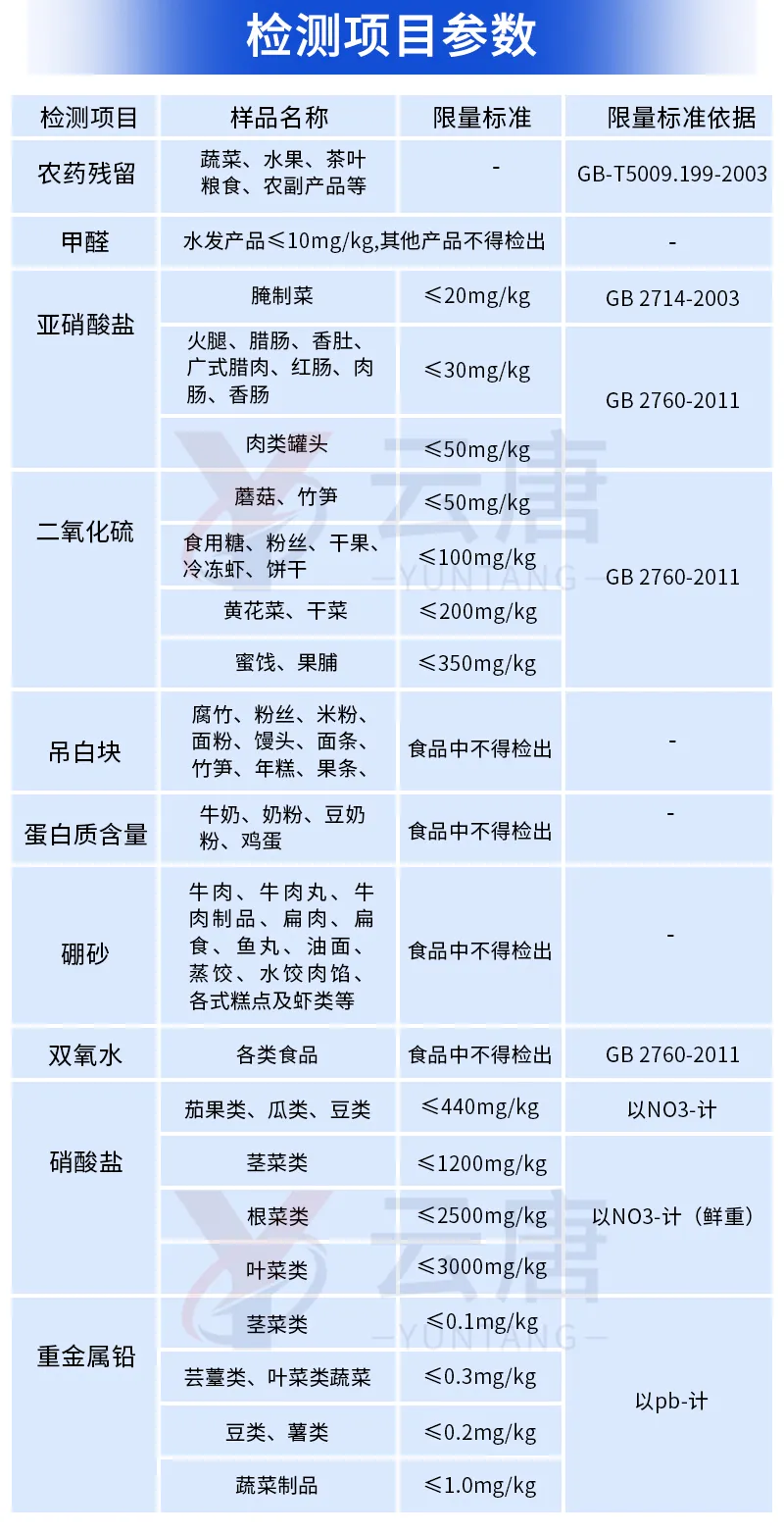 果蔬中:農藥殘留,病害肉診斷:組胺、揮發性鹽基氮、肉制品酸價、水發產品中組胺