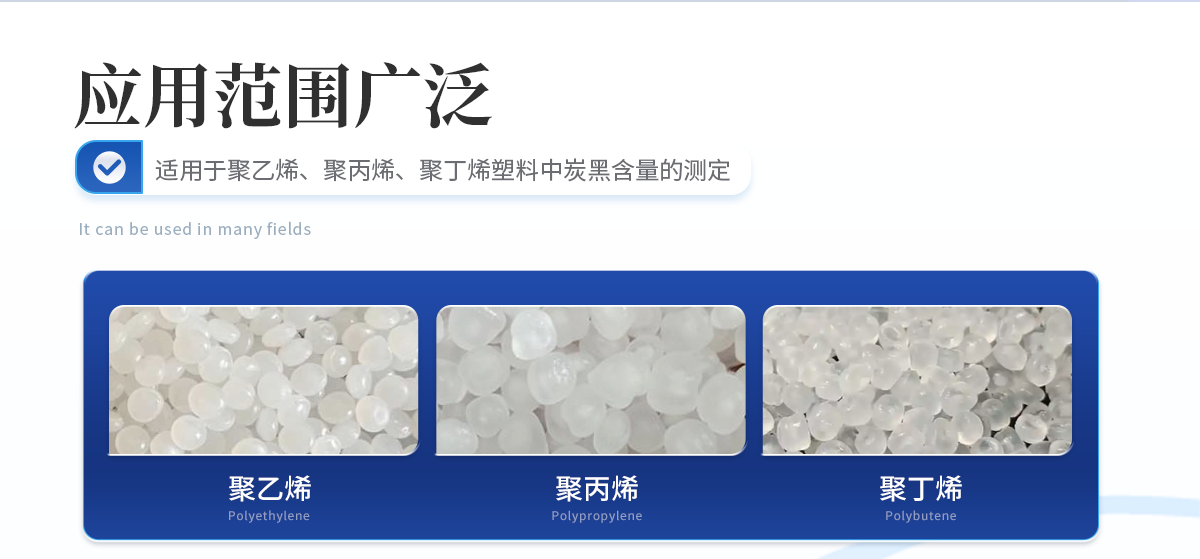 炭黑含量測(cè)試儀適用于聚乙烯、聚丙烯、聚丁烯塑料中炭黑含量的測(cè)定。炭黑的測(cè)試是通過試樣在氮?dú)獗Wo(hù)下,高溫分解后的重量分析得到的。該儀器具有使用方便,操作簡(jiǎn)單,測(cè)量準(zhǔn)確,精度高,自動(dòng)化程度高等優(yōu)點(diǎn)。