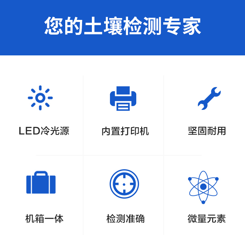 4、可檢測土壤及化肥、有機肥、植株中的速效氮、有效磷、速效鉀、全氮、全磷、全鉀、有機質(zhì)含量,土壤酸堿度,含鹽量,以及土壤鈣、鎂、硫、硼、氯、硅等6種中微量元素。
