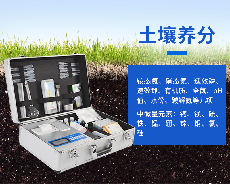 土壤養(yǎng)分:● 銨態(tài)氮、速效磷、速效鉀、水份、有機質(zhì)、酸堿度、以及鈣、鎂、硫、硼、氯、硅等各種中微量元素;