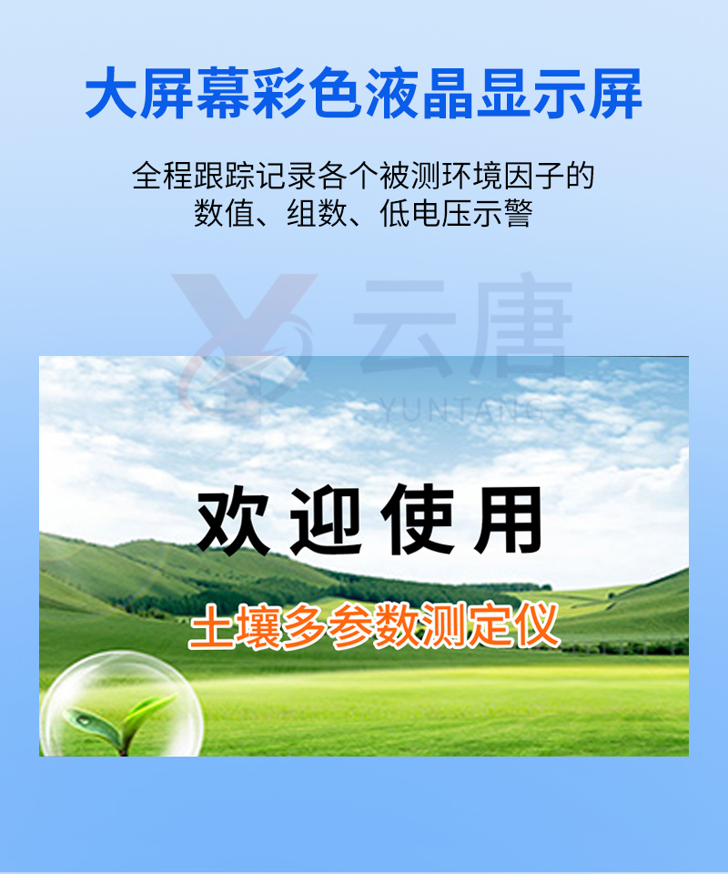 4、大屏幕中文液晶顯示,可實時顯示溫度值、水分值、組數、低電壓示警,存儲數據等,便于野外攜帶作業。