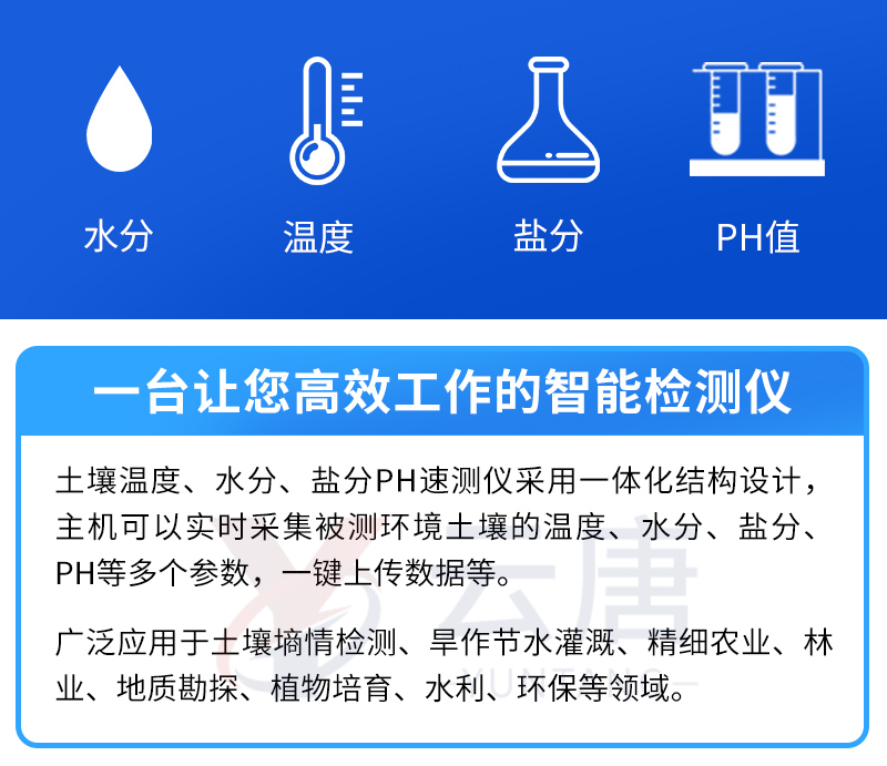 土壤水分測定儀采用FDR頻域反射原理,快速準確測量土壤中含水量,可對多處樣地、不同土壤深度的水分含量進行快速檢測和長期連續監測。廣泛應用于土壤墑情檢測、旱作節水灌溉、精細農業、林業、地質勘探、植物培育等領域。