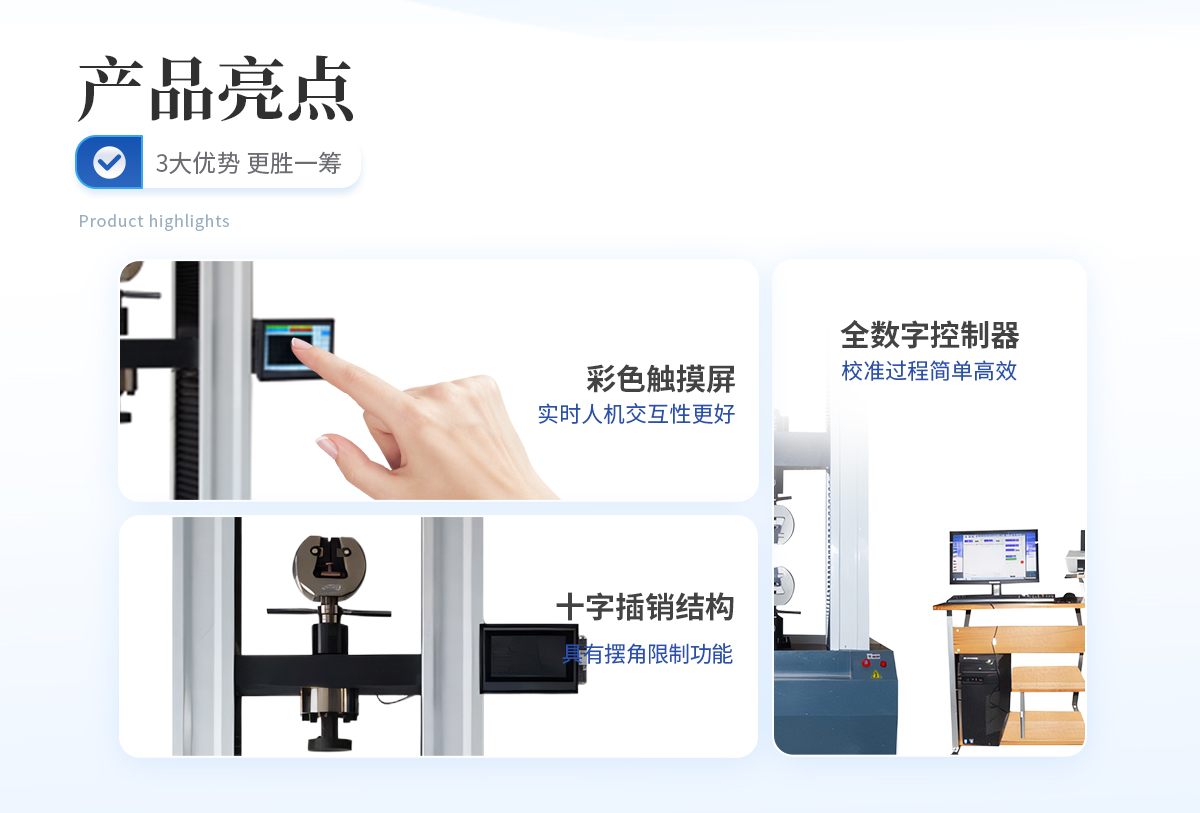 該系列萬能試驗機適用于橡膠、塑料、紡織物、防水材料、電線電纜、網(wǎng)繩、金屬絲、金屬棒、金屬板、各種金屬、非金屬及復合材料的力學性能指標的測試,如各種拉伸試驗,通過更改附具便可輕松完成壓縮、彎曲、剪切、撕裂、剝離、穿刺等試驗。7寸TFT彩色觸摸屏,直接輸入試驗參數(shù),中英文操作界面層層提示,用戶無需操作手冊即可輕松操作。本拉力試驗機具有試驗力數(shù)字顯示,試驗速度連續(xù)可調(diào),試樣拉斷自動停機,峰值保持等功能,試驗結(jié)果完全符合國家相關(guān)標準的要求。